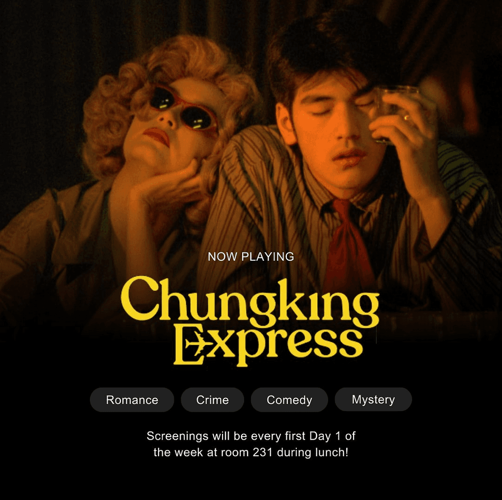 to connect with the main user demographic of high school students, we also decided to lean heavily into creating netflix-inspired graphics for club activities.